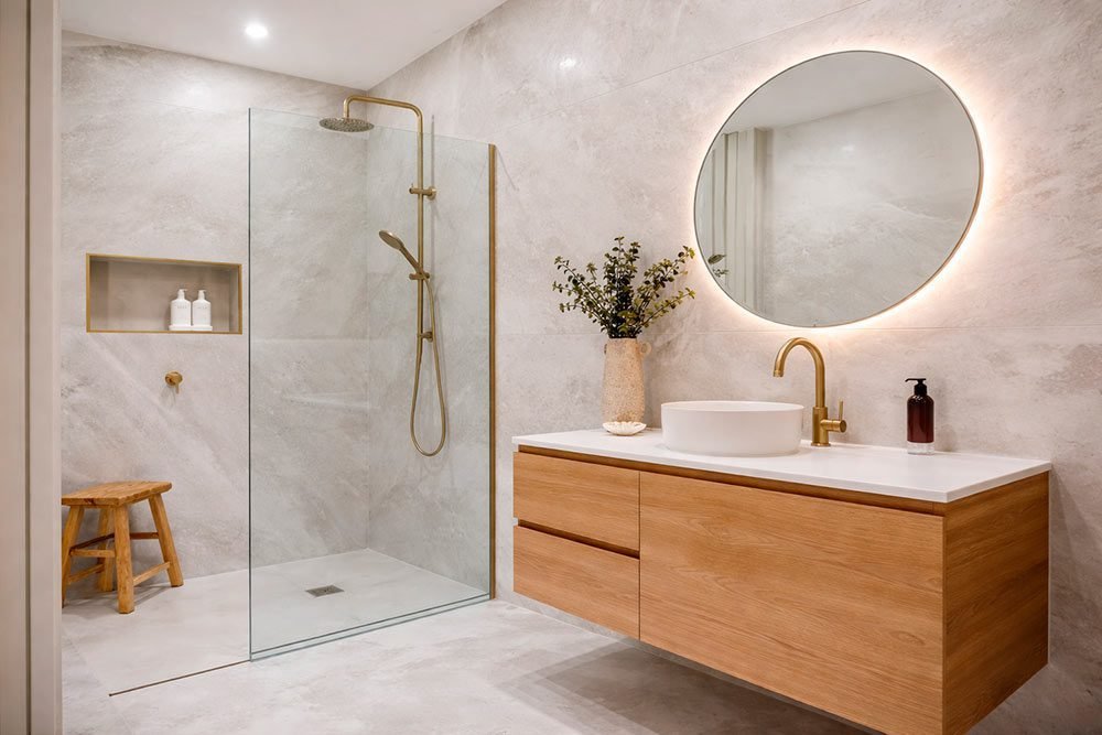 Espacio Equilibrado: A pesar de ser una reforma parcial, el cambio de materiales ha logrado convertir un baño funcional en una estancia moderna y profundamente acogedora.